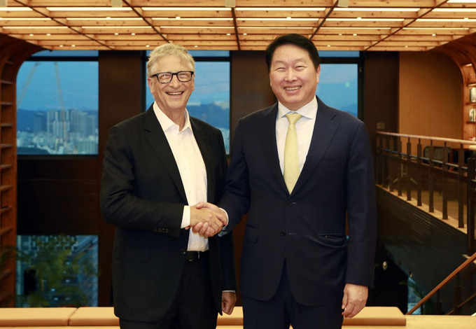 22일 SK그룹에 따르면 최 회장과 게이츠 이사장은 전날 서울 종로구 SK서린빌딩에서 만찬 회동을 갖고, SK가 2대 주주인 미국 테라파워의 SMR 기술 개발 및 상업화 관련 전략적 협력 방안과 10년 이상 이어져온 백신 분야 협업의 확장에 대해 협의했다. 게이츠 이사장은 지난 2008년 자신이 설립한 차세대 SMR 혁신기업 테라파워의 이사회 의장을 맡고 있다.